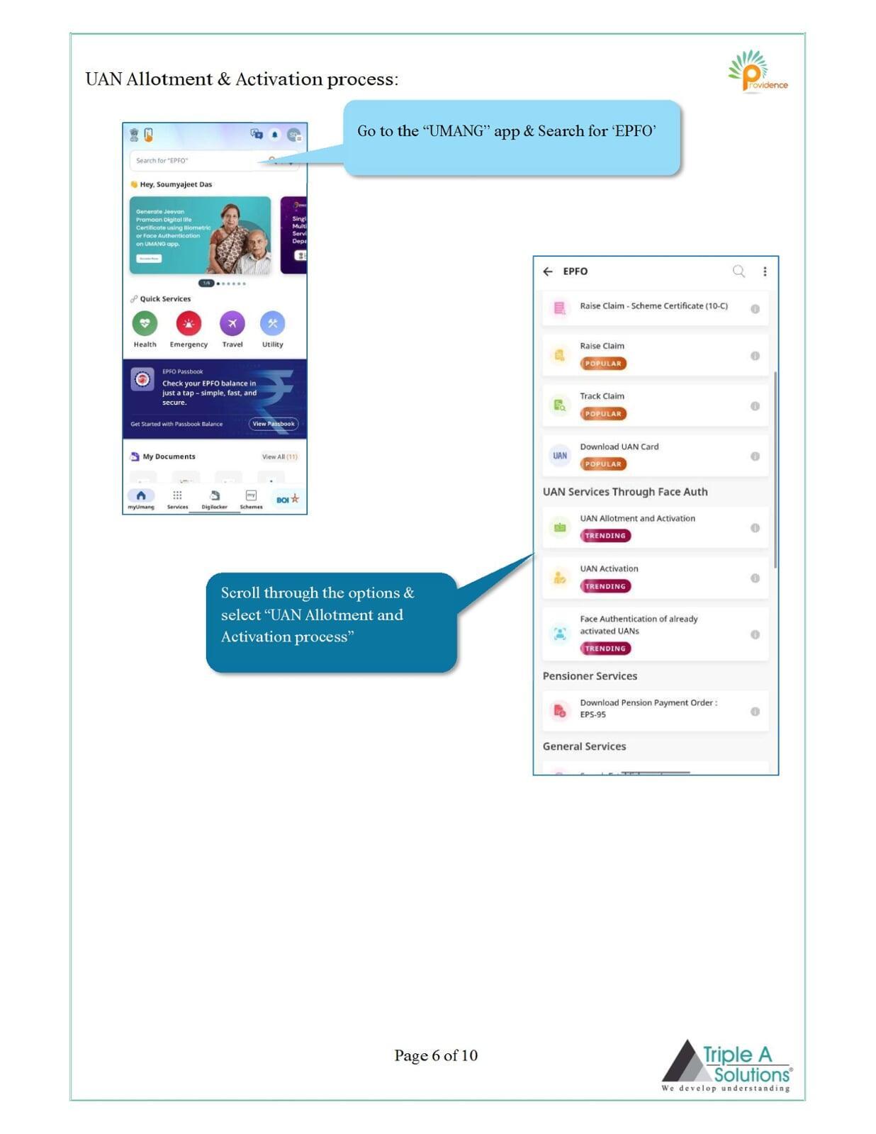 Step by step instructions to generate UAN digitally through the UMANG App on Android and iOS.